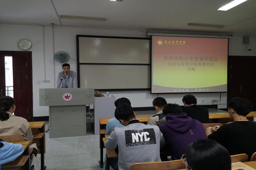 新闻网讯(通讯员王潺潺、李怡)2019年10月13日上午,武汉体育学院学科学院分党校第25期入党积极分子培训班开班仪式在东教304举行。新闻传播学院党委书记童铸、国际教育学院党委常务副书记田智会、体育工程与信息技术学院党委常务副书记何丽苹、经济与管理学院党委书记吴鲲、经济与管理学院党委副书记孙鹏飞及学科学院128名入党积极分子参加了开班仪式,仪式由本期党校负责人张培主持。