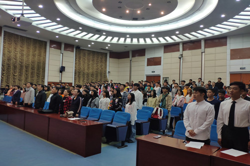 新闻网讯(通讯员李怡)2019年10月8日上午,经济与管理学院在东教四楼第三报告厅召开2019级新生见面会。学院党委书记吴鲲、党委副书记孙鹏飞出席会议。各教研室党支部书记与主任、教师代表、学长代表、19级辅导员以及全体19级新生参与会议。见面会由孙鹏飞主持。