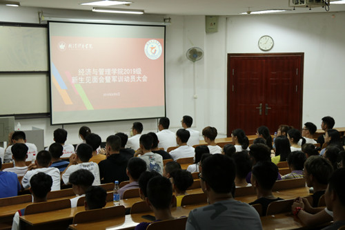 新闻网讯(通讯员李怡)2019年9月8日晚8点,经济与管理学院2019级新生见面会暨军训动员大会在东教k205召开,海军工程大学军官代表、19级辅导员程洁、17级优秀学生代表以及19级全体新生参与了本次活动。