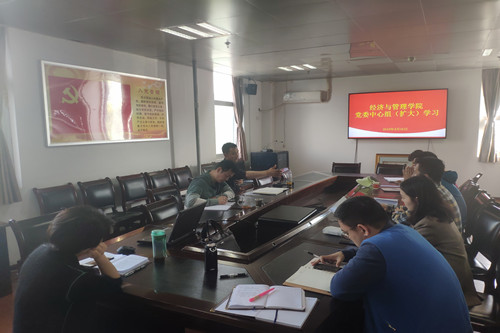2019年4月16日下午,经济与管理学院在小球馆三楼会议室召开党委中心组扩大会议。学院党委书记吴鲲、副书记兼副院长孙鹏飞、各教研室书记、各年级辅导员参与本次会议。