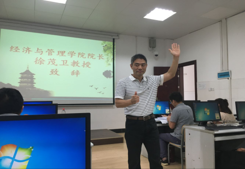 出席本次活动的嘉宾有经济与管理学院院长徐茂卫教授、副书记孙鹏飞老师,信管教研室主任李书娟副教授、书记游战澜副教授、潘国祥副教授、牟粼琳老师和周峰利老师,以及来自经济与管理学院各年级各专业的同学六十余人参加了本次比赛。比赛前,徐茂卫院长对大家提出殷切希望,指出要想精通一门技能,每周至少练习二十小时,即一万小时定律;鼓励大家多花时间去掌握技能,只有多多练习,提升能力,才有利于长远发展。