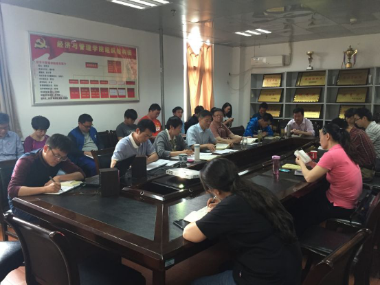 2016年5月4日,经济与管理学院在小球馆三楼会议室开展“两学一做”、党风廉政宣传月学习教育动员会。经管学院院长徐茂卫、党总支书记胡秋香、副院长田小平、总支副书记孙鹏飞,学院全体教师党员以及辅导员参加了会议,会议由学院院长徐茂卫同志主持。