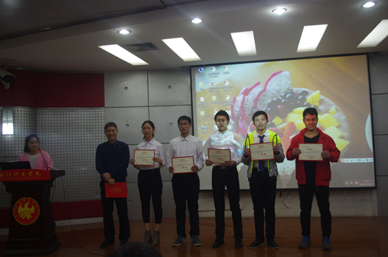 2015年11月27日下午,由经济与管理学院主办的首届“大学生创新创业”大赛决赛在学术报告厅顺利进行。担任本次大赛的评委是武汉传奇康达健身公司总经理陈杰华、湖北省体创空间孵化器公司副总经理钟文亮、经管学院副书记孙鹏飞、经管学院管理教研室陈艳玲老师、信管教研室李书娟老师以及休闲教研室徐文琦老师。