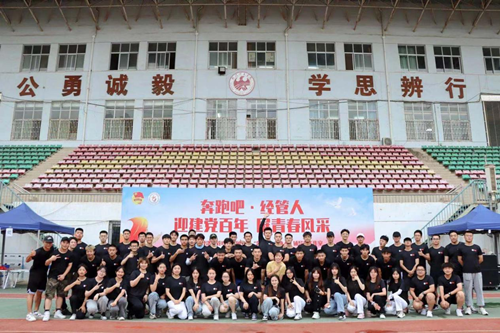新闻网讯(通讯员杨宇恒)今年是中国共产党建党100周年,为加强我院师生感情,培养学生爱党、爱国、爱社会的素养,经济与管理学院于6月8日下午14:00在西田径场举行了以“迎建党百年,展青春风采”为主题的智趣团学活动。武汉体育学院党委学工部部长姜劲晖,团委书记张广弟,经济与管理学院党委书记吴鲲,学院党委副书记、副院长孙鹏飞,学院团委书记张培,学院团委副书记李怡,学院辅导员与教师代表出席本次活动,18、19、20级各团支部参加本次活动。
