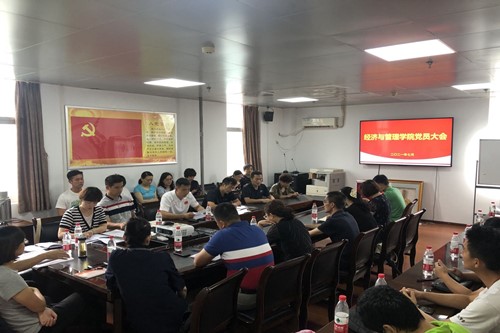 新闻网讯(通讯员李怡)2020年7月17日下午3点,经济与管理学院党委在学院三楼会议室召开全体党员大会,学院党委书记吴鲲,党委副书记、副院长孙鹏飞出席会议,全体党员参加会议。会议由吴鲲主持。