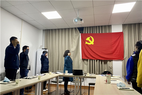 会议伊始,支部全体党员在支部书记赵文莉的带领下重温入党誓词。