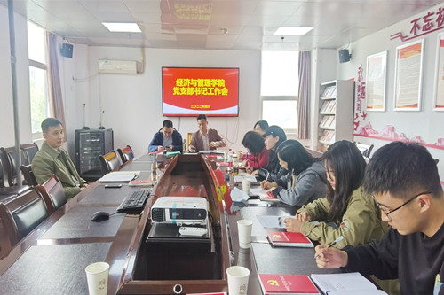 为进一步加强和提升学院党的建设和思想政治工作的科学化、规范化、制度化水平,4月16日下午2:30,经济与管理学院在小球馆三楼会议室召开党支部书记工作会,党委书记吴鲲主持会议并讲话,组织员、各师生党支部书记参加会议。