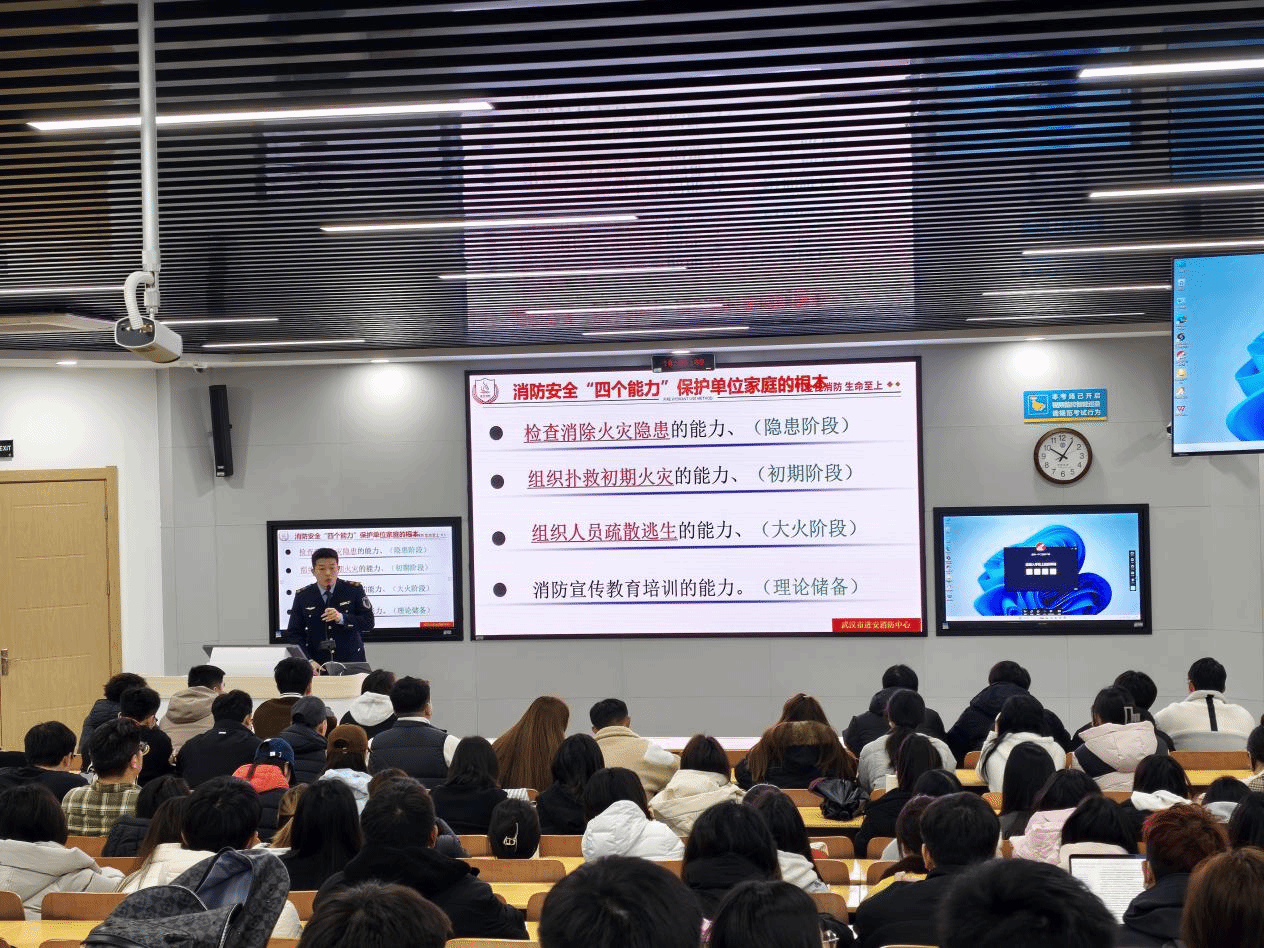 为切实增强广大学生消防安全意识,提升应急避险与自救互救能力,筑牢校园安全防线,经济与管理学院研究生于3月17日在东教学楼K405教室开展消防安全主题教育,特邀专业消防员教官走进教室,为同学们带来了一堂生动、实用的消防安全知识课。