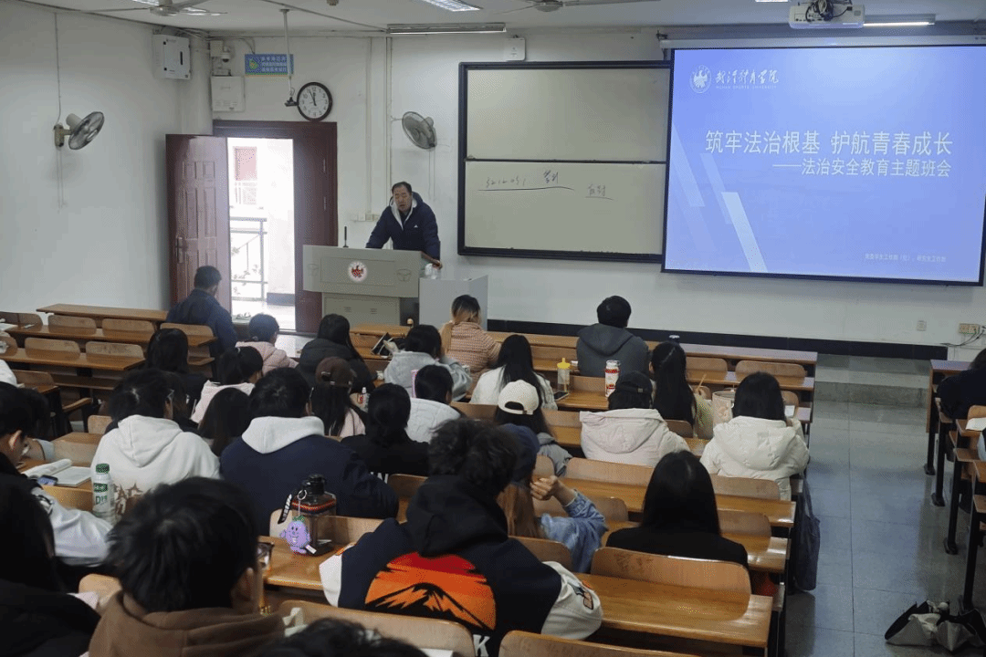 2026年3月20日,“筑牢法治根基 护航青春成长”法治安全教育主题班会在东教K404教室顺利开展,本次班会由辅导员武晓波主讲,面向2024级全体同学,旨在强化学生法治观念,明晰日常行为法律边界,提升安全防范与依法维权能力。